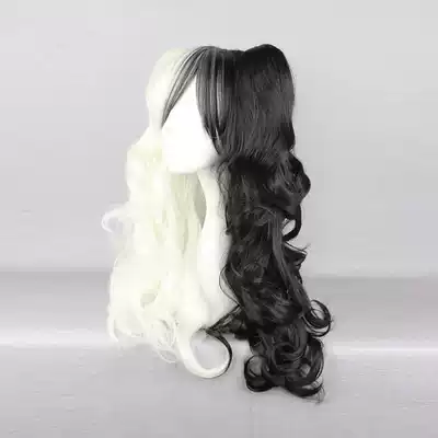 Mcoser anime wig projectile on black white bear girl COS wig half black half white long curly hair