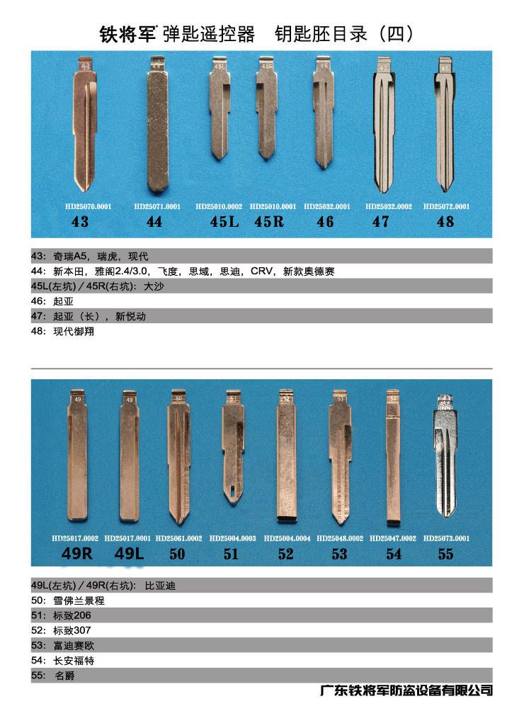 Iron General's pop-up key remote control special key embryo Guangxi general agent