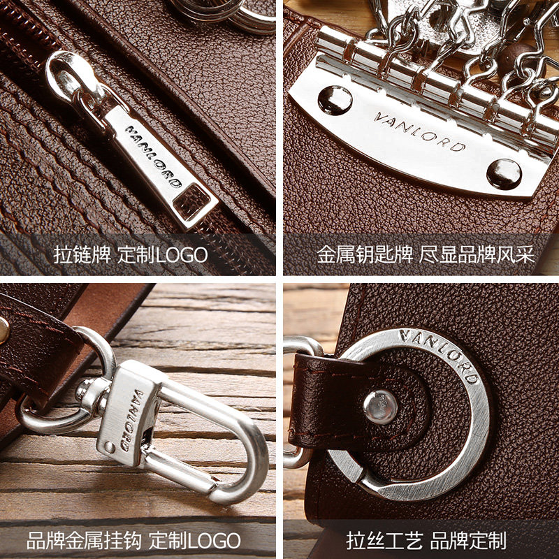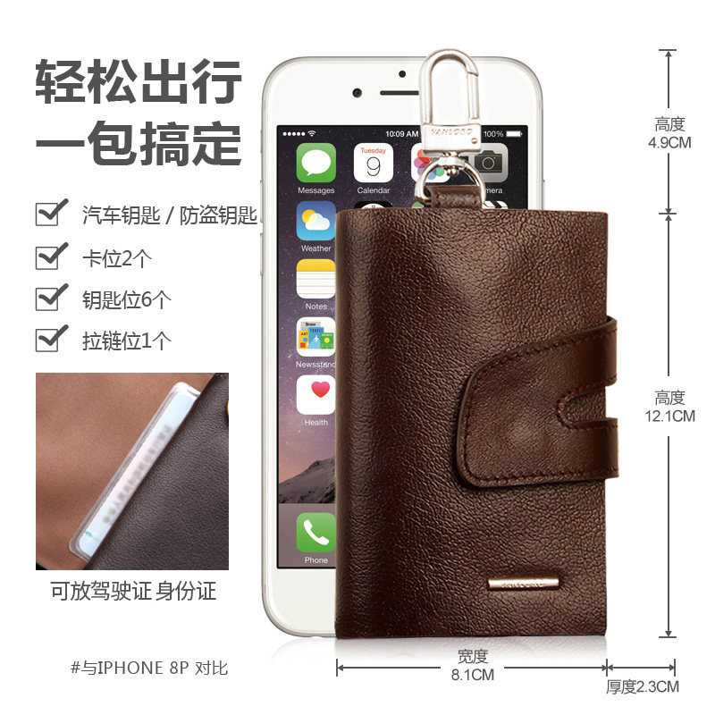 Men's Key Bag Genuine Leather Waist Hanging Tide Card Personality Multifunction Cow Leather Zero Money Bag Large Capacity Universal Car Key Bag