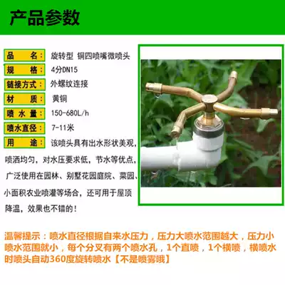 New product 360 degree rotating all copper cross 4 bifurcation water spray nozzle garden planting automatic sprinkler lawn nozzle