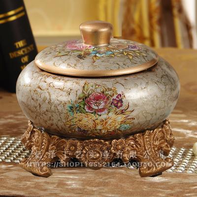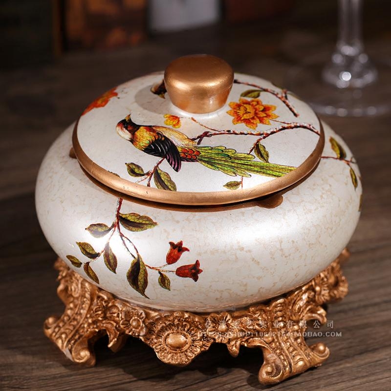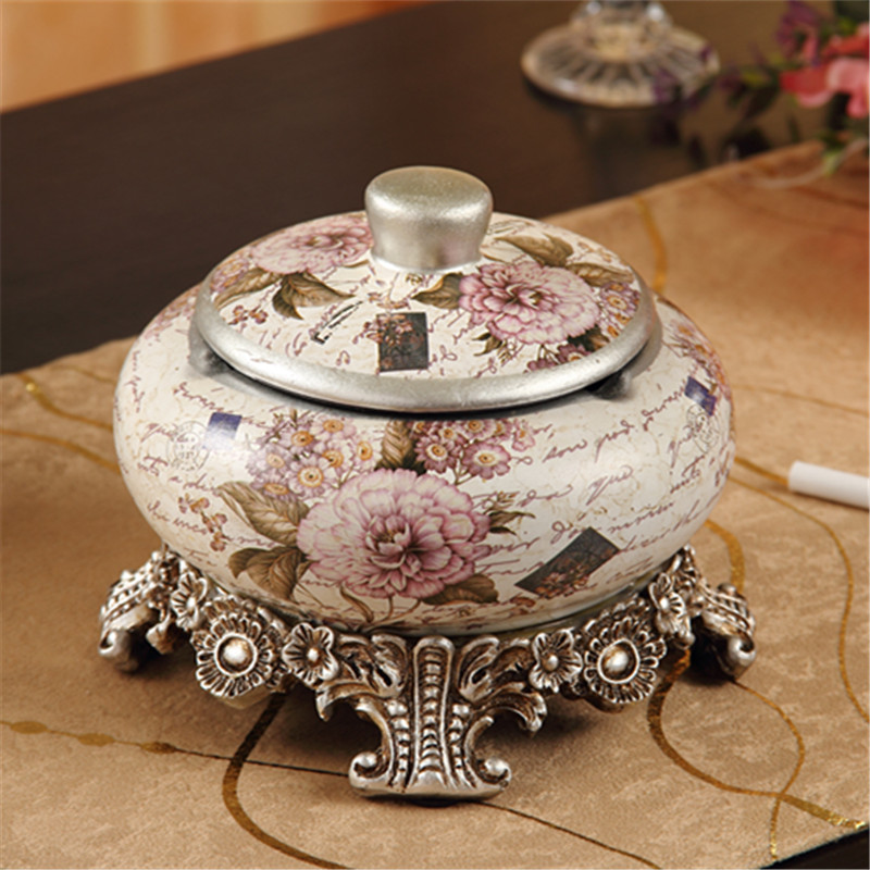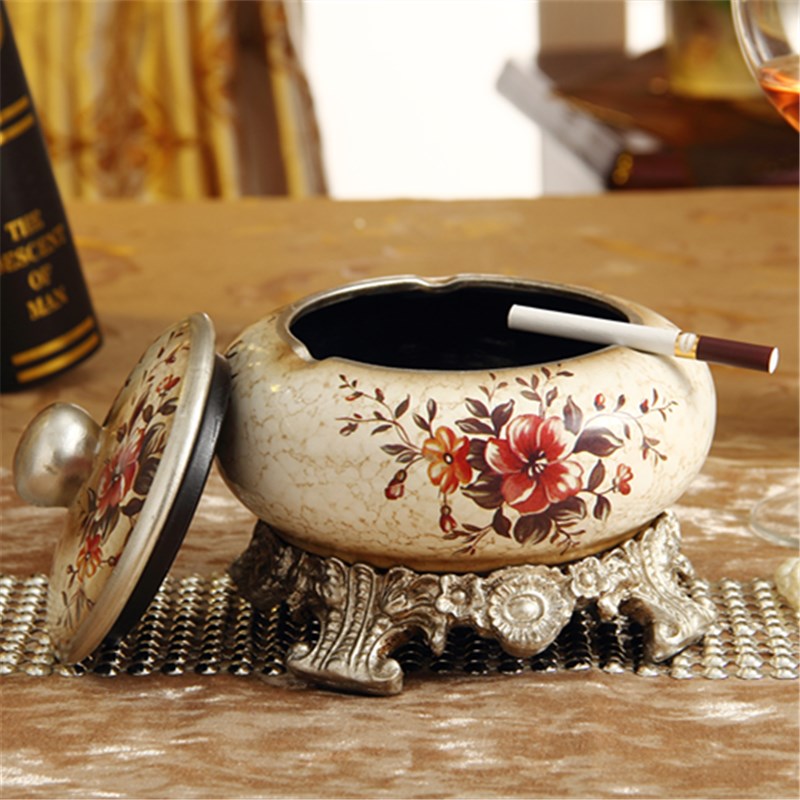 European retro ceramic round ashtray with lid fashion creative home high-end windproof decoration living room ornaments