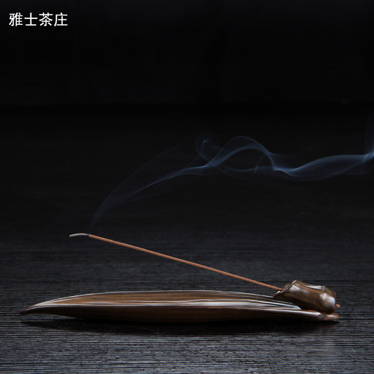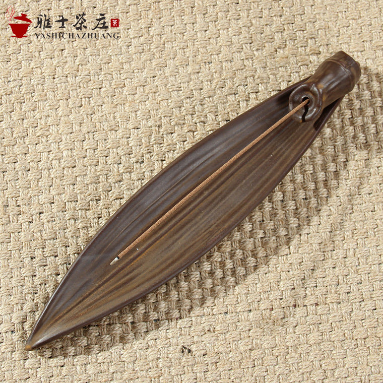 Antique iron glaze ceramic incense burner Incense stick Sandalwood Agarwood Tea Ceremony Buddha line incense lying incense burner Bamboo leaf incense stick