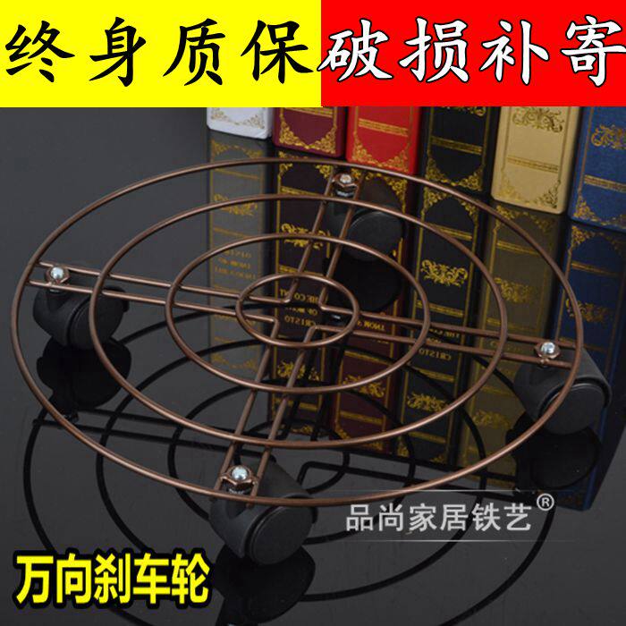 Thickened Iron Art Mobile Flower Racks Flower Pots Nursery Potted Base Wooden Barrel Rack Universal Brake Pulley Sub Swivel Home