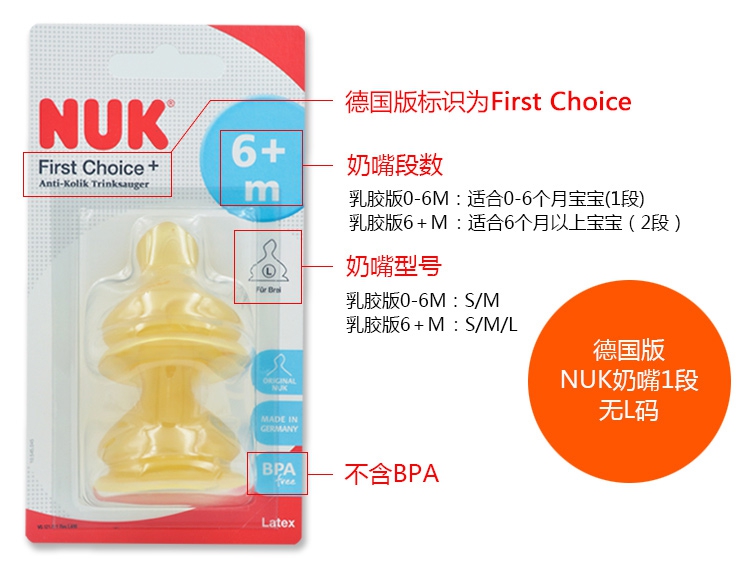 German original NUK baby wide-caliber anti-flatulence silicone latex pacifier No. 1 2 two upgraded version