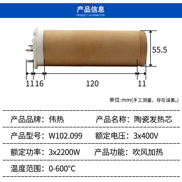Great heat 102099 3 * 400 3 * 2200W three-phase 380V heating core hot air machine ceramic heating accessory