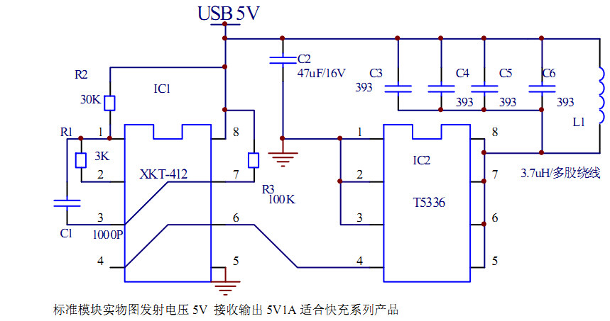 USB 5V1A wireless power supply module XKT412 chip scheme circuit diagram XKT412-07