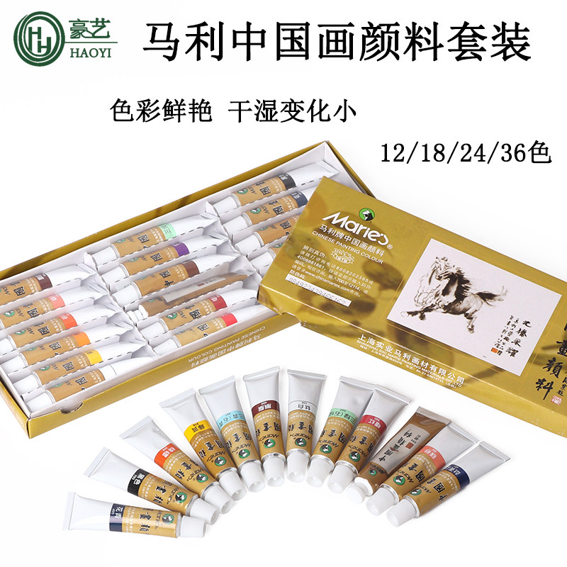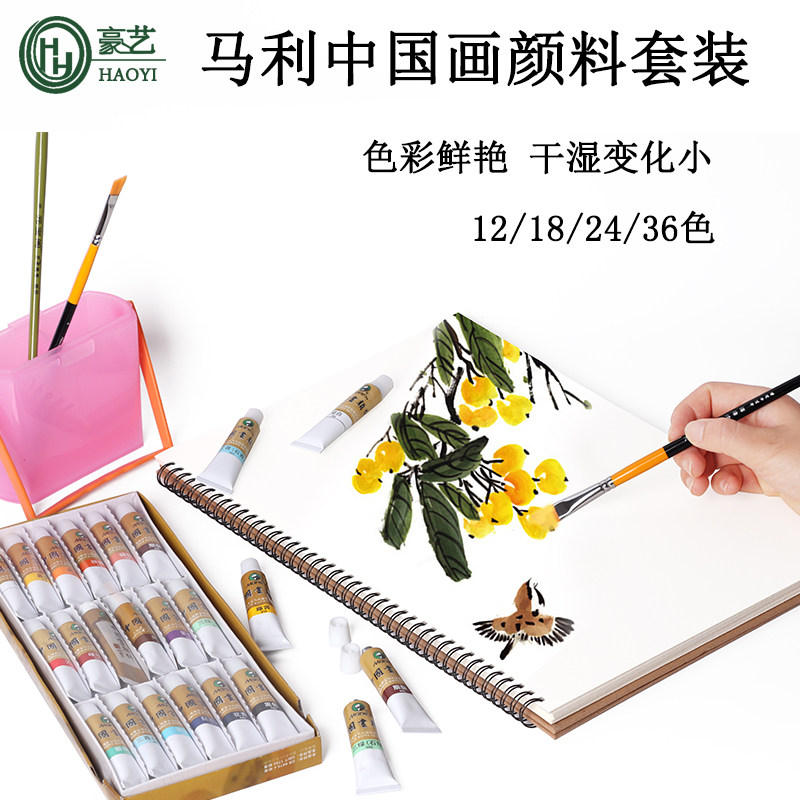 Mali China Painting Paint Suit 12ml Work Stroke Ink Painting Landscape Painting 24 Color Single Brush Country Painting Paint