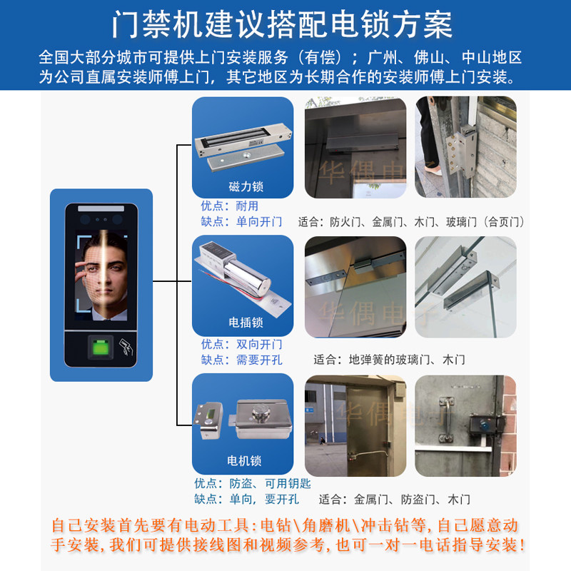 Attendance access control integrated system set office glass door fingerprint card machine face recognition Foshan Guangzhou installation