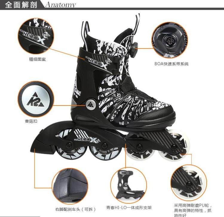 American K2 SK8 HERO X BOA Knob Competition Training Professional Soft Boots Super Comfortable Casual Roller Skates
