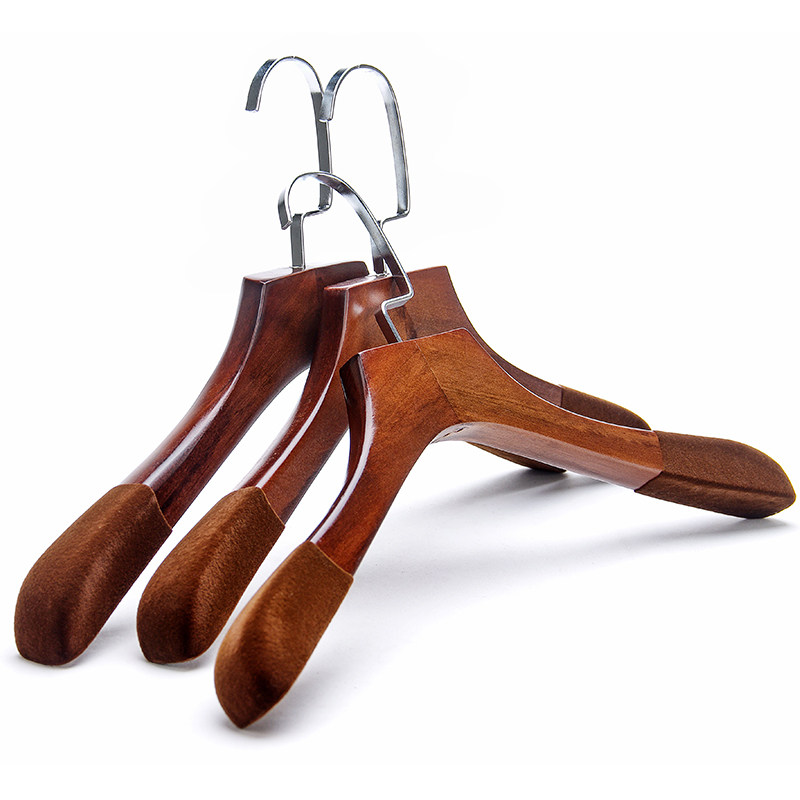 Sweater hanger household wardrobe flocked non-slip anti-skid anti-shoulder corner women's clothing store solid wood adhesive hook wooden clothing hanging