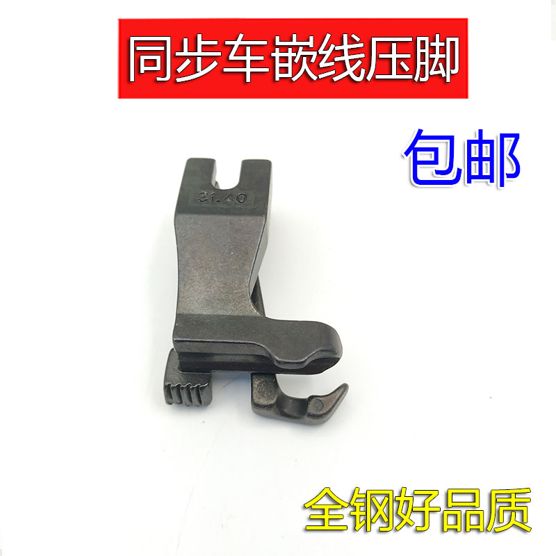 Industrial sewing machine synchronous car thick material leather plastic bone strip slit rope presser foot integrated feeding insert wire presser foot