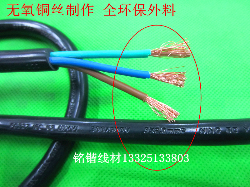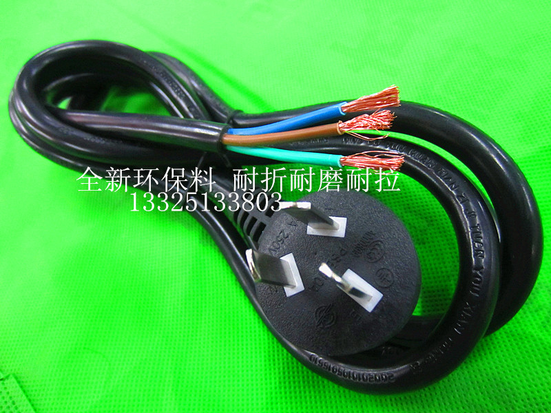 Pure copper national standard power core 3 hole 3 square 1 8 3 3 m three core plug three power connection wire