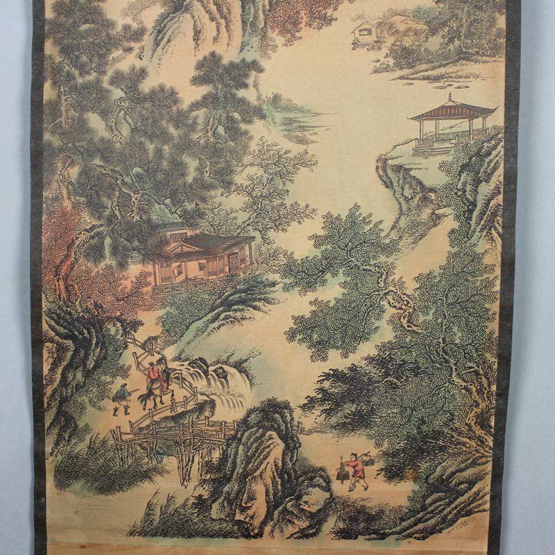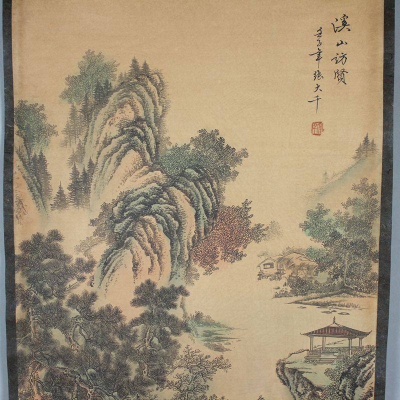 Promotion of antique Chinese painting landscape painting landscape painting office book house decoration middle hall painting celebrity Zhang Daqian Creek Mountain Visit Yin