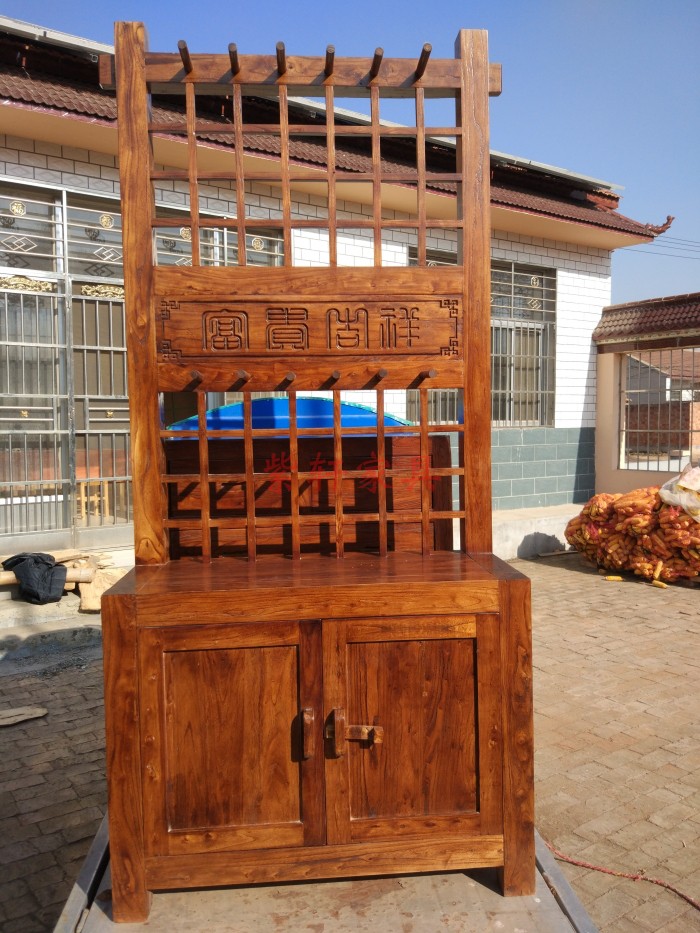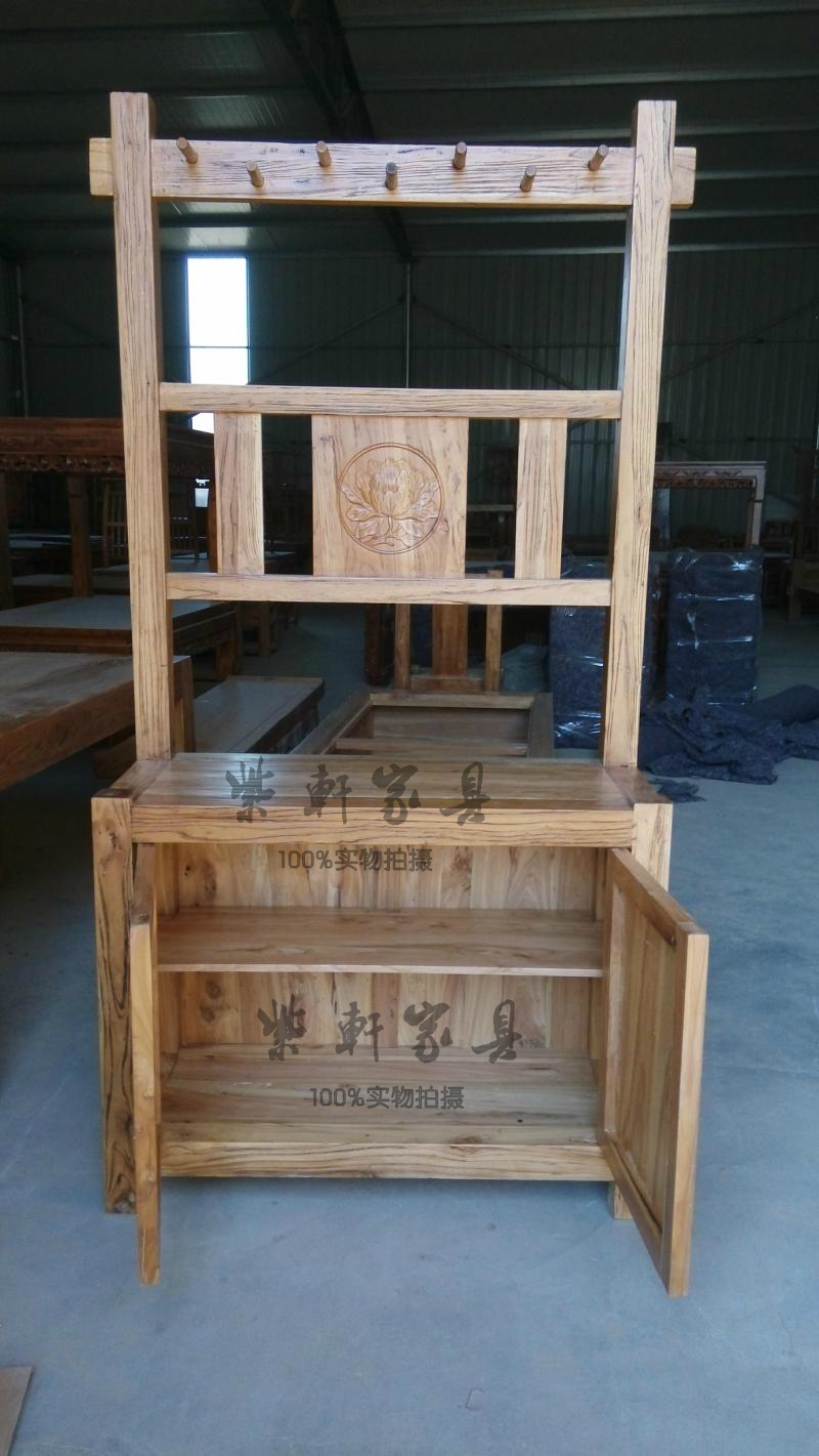 Korean coat rack Shoe cabinet Full old Elm wood coat shoe cabinet Shoe cabinet hanger Pastoral solid wood shoe rack