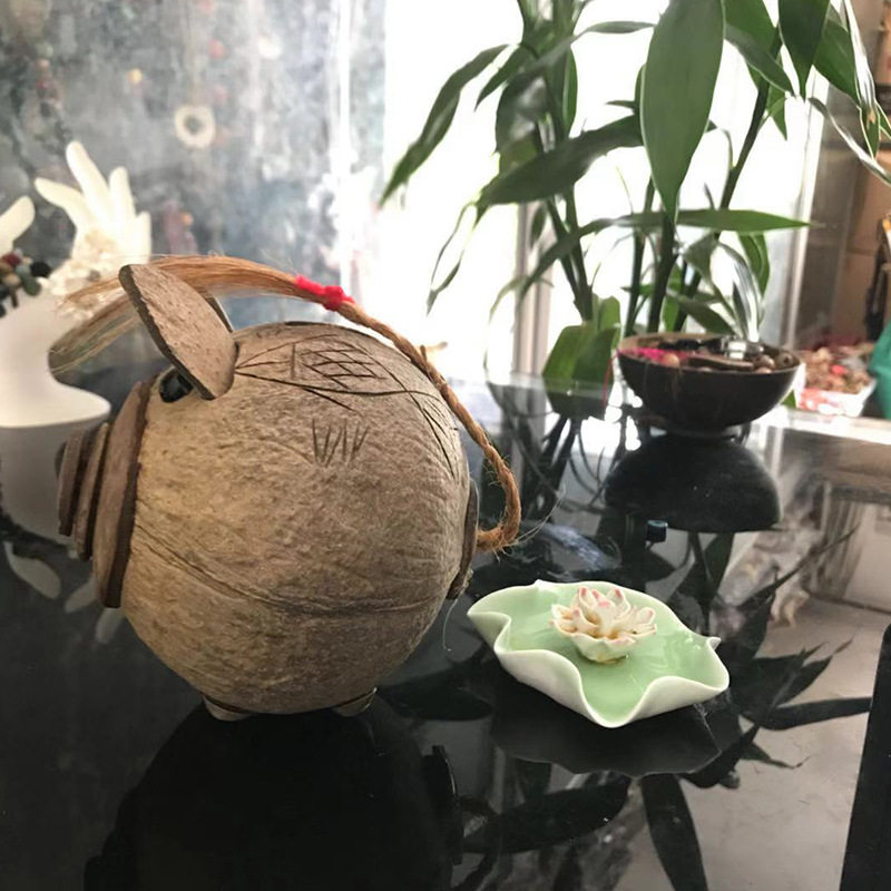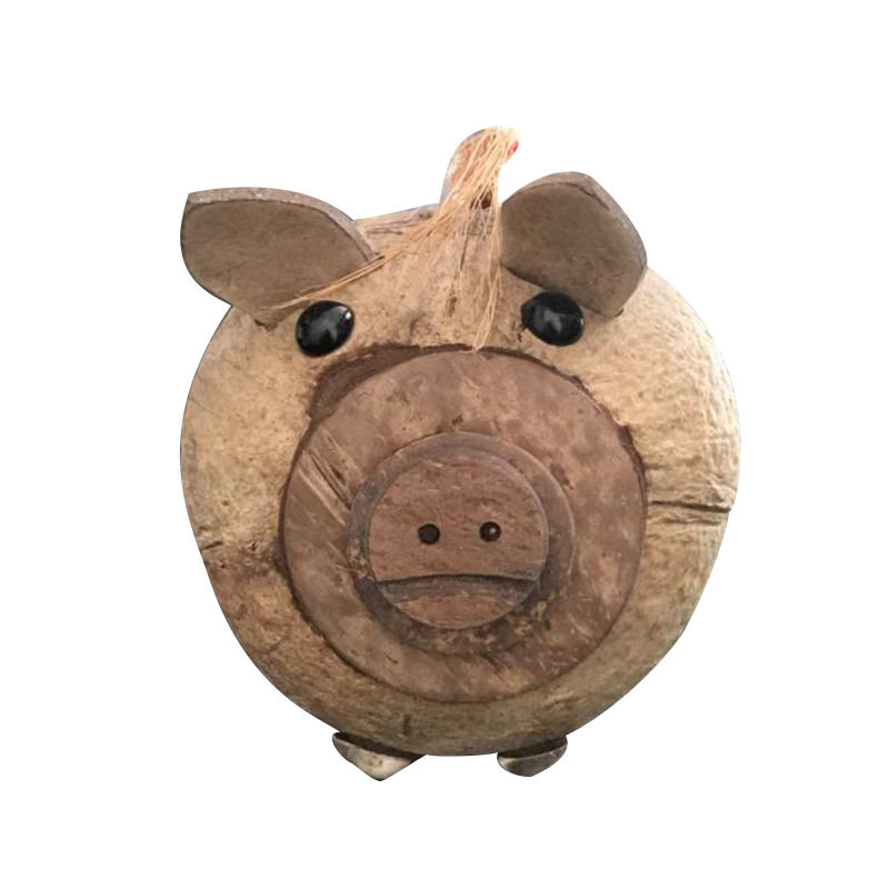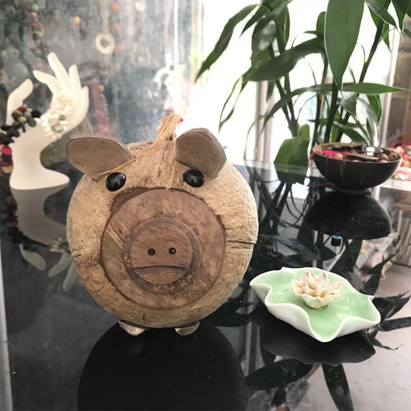 Coconut Carved Pig Money Pot Children Coin Deposit Storage Tanks Hainan Featured Coconut Shell Crafts Genders Versatile Manual Customizable-Taobao