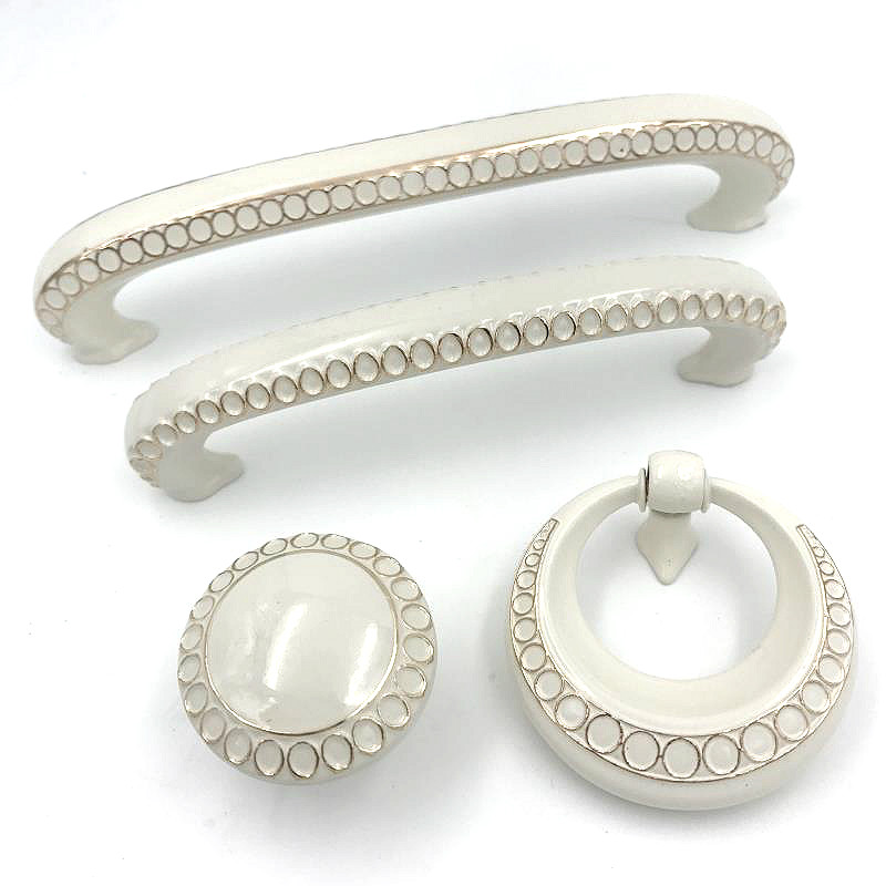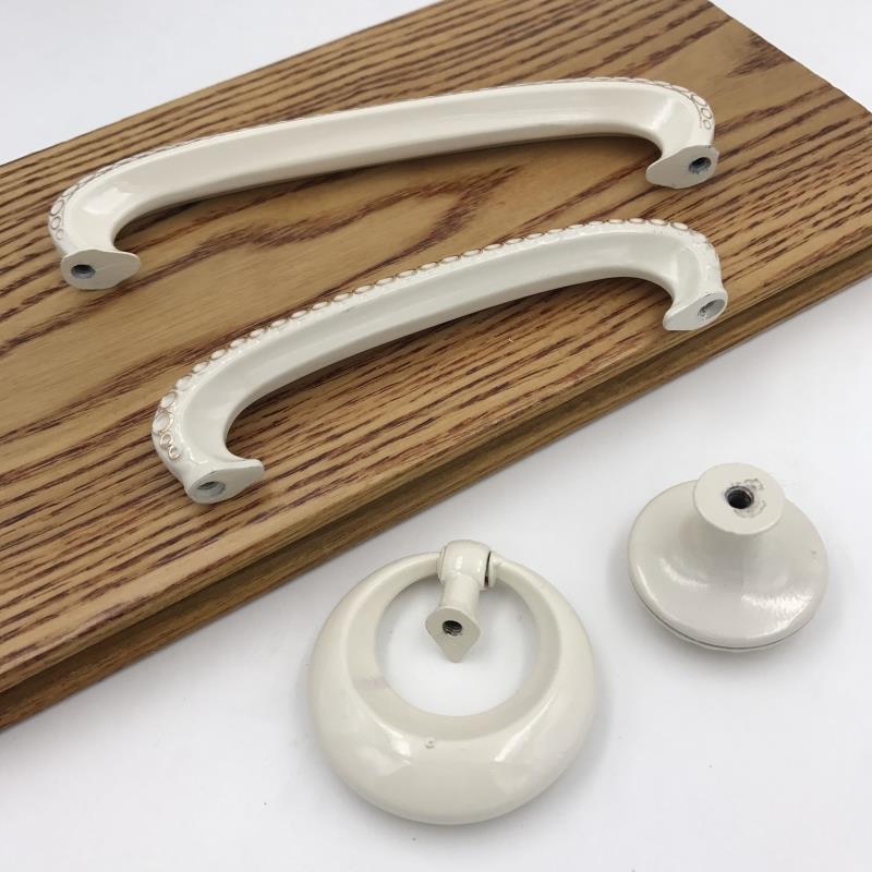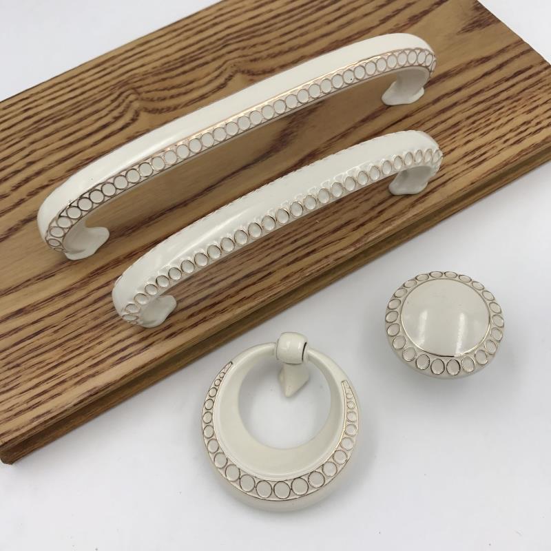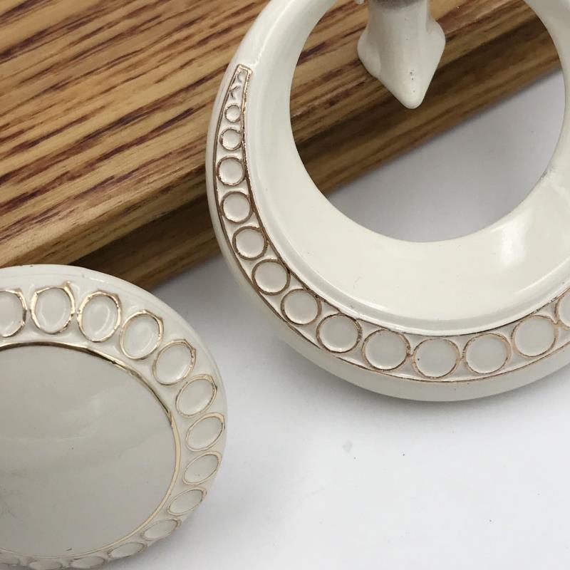 Popular zinc alloy European cabinet door drawer ivory white handle overall cabinet wardrobe ring round head handle 6621 spot