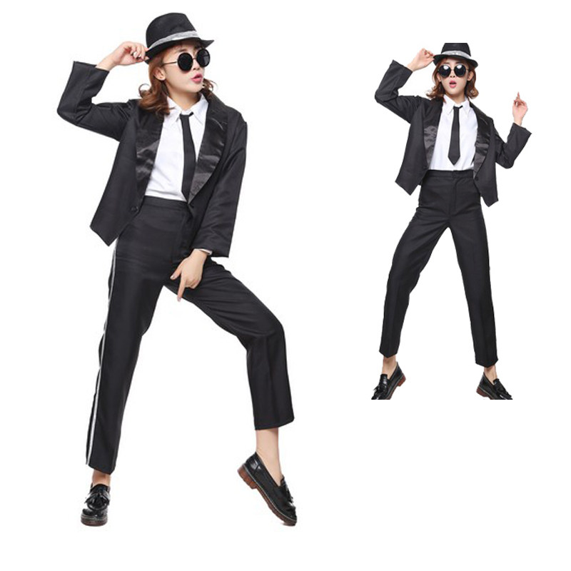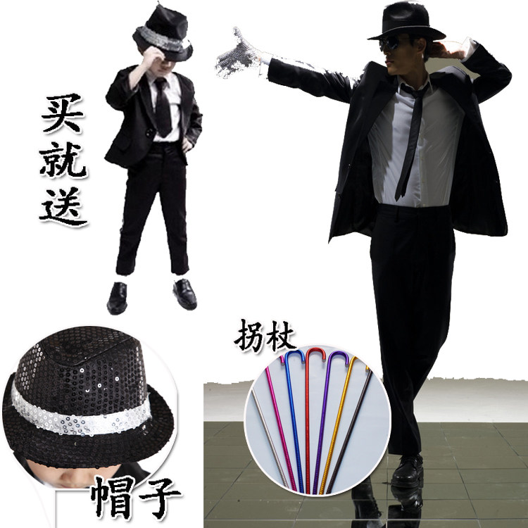 Children mj Michael Jackson show costume Dance suit Breakdance Jazz Hip-hop suit Hat Adult