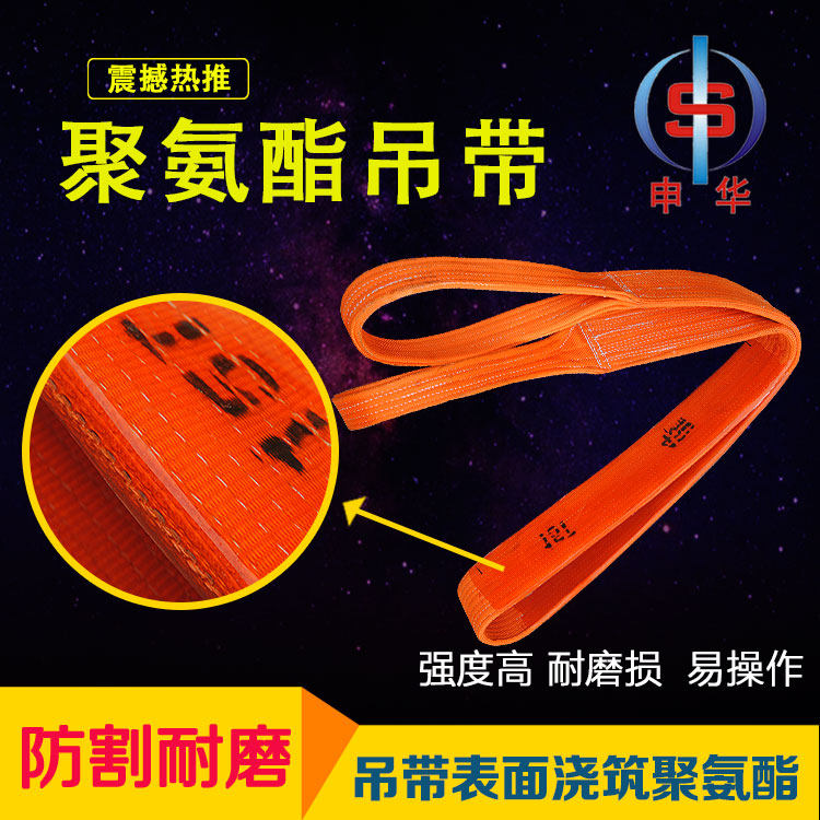 Single-sided pour abrasion resistant anti-cut polyurethane flat harness lifting sling with glass harness 3 5 8 1 ton meters