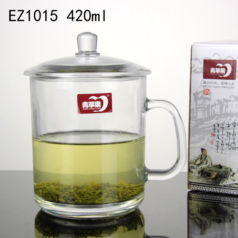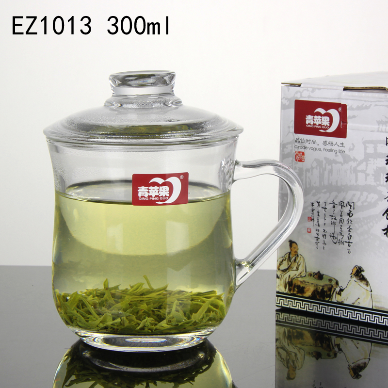 Green apple glass tea cup with lid tea drinking cup lid cup with cup home glass cup green tea water glass