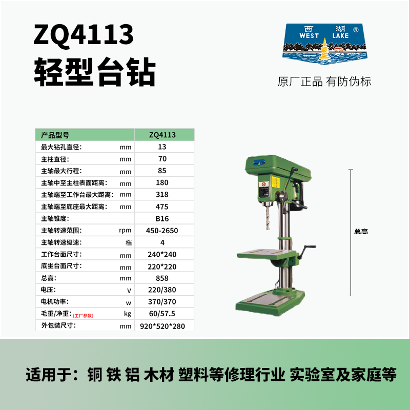 Hangzhou West Lake desktop drilling machine ZQ4113 16 19 25 32 ZQD4125 32 Light drilling machine