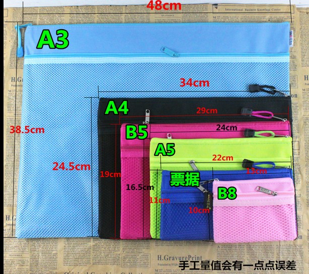 A4 B5 A5 B8 zipper bag bill bag color canvas storage bag multi-layer document bag Oxford cloth job bag