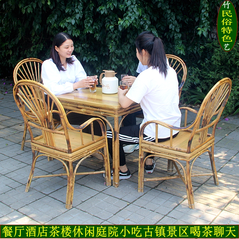 Folk bamboo furniture bamboo tables and chairs combined outdoor courtyard simple pastoral bamboo chairs rectangular dining table