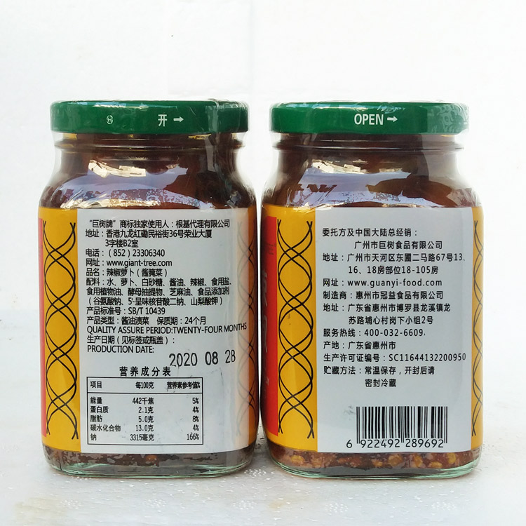 (A set of 3 bottles)Giant Tree chili Radish 300g Hong Kong Giant Tree brand chili Radish salty and spicy refreshing porridge