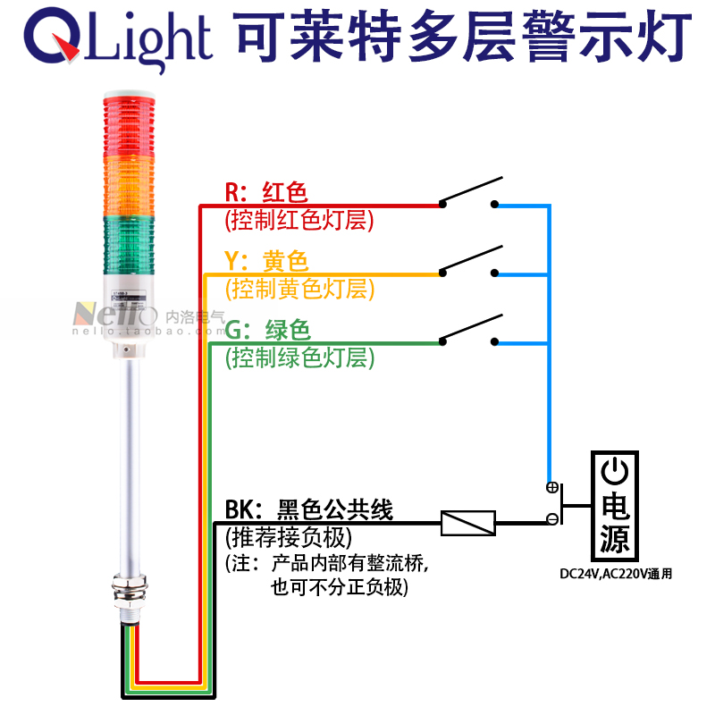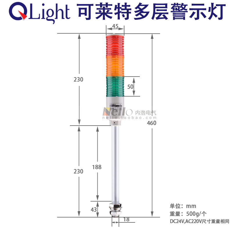 Colette multi-layer signal light ST45B-3-RAG-24V three-color tower light AC220V alarm 45mm warning light