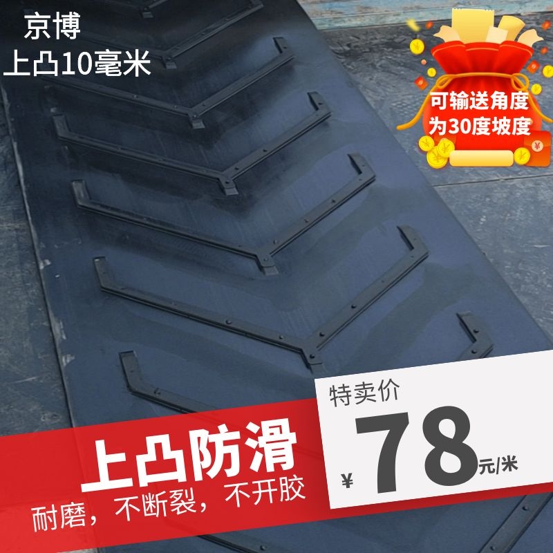 Pattern conveyor belt Herringbone anti-slip V word convex nylon drive belt Black rubber climbing conveyor belt