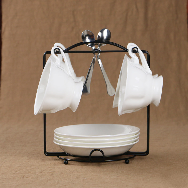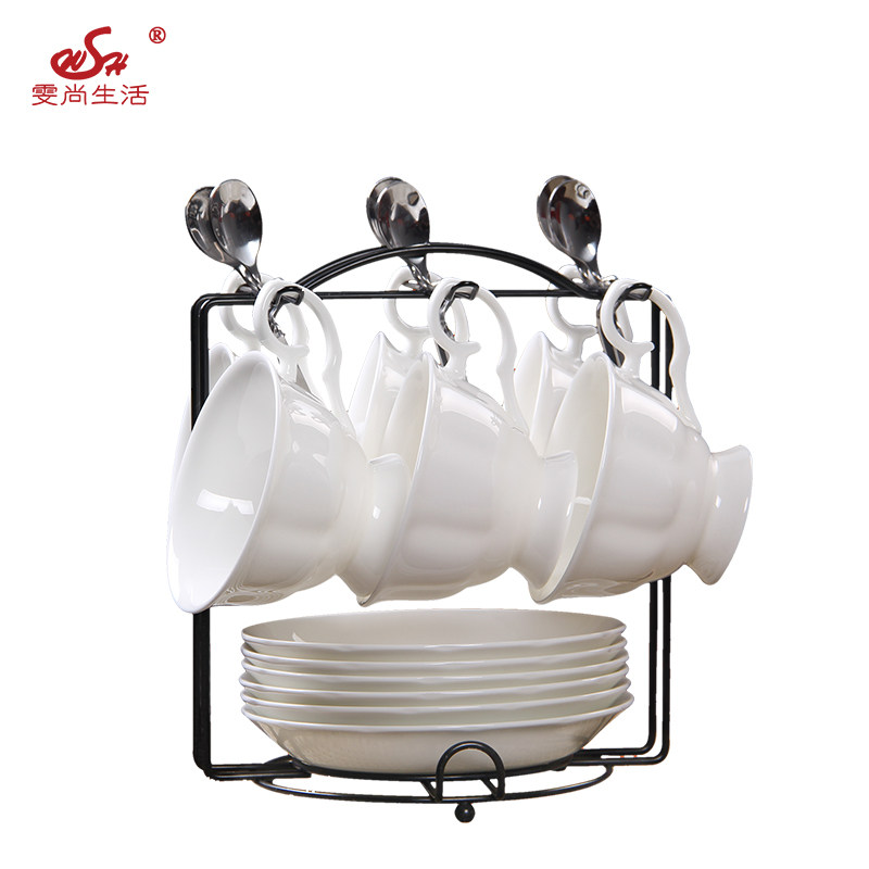 English Pure White Bone Porcelain Coffee Cup Suit Combination Brief Retro Ceramic Afternoon Tea Cup Saucer Set With Rack Spoon