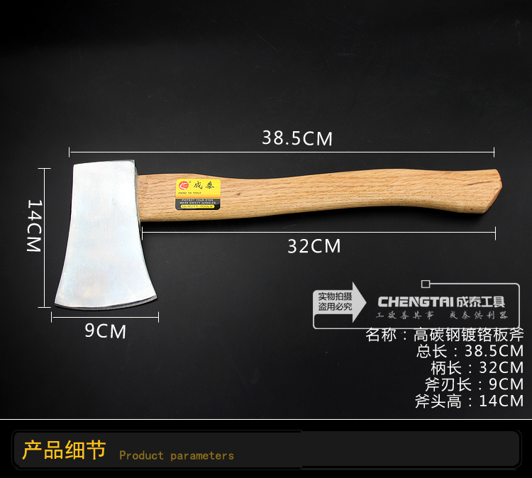 38cm long about 2 pounds heavy high carbon steel wooden handle forged chrome-plated axe axe cut crack wood axe woodworking axe