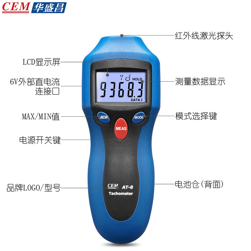 CEM Huashengchang AT-8 digital tachometer handheld dual-purpose speed measuring instrument digital display tachometer AT-6