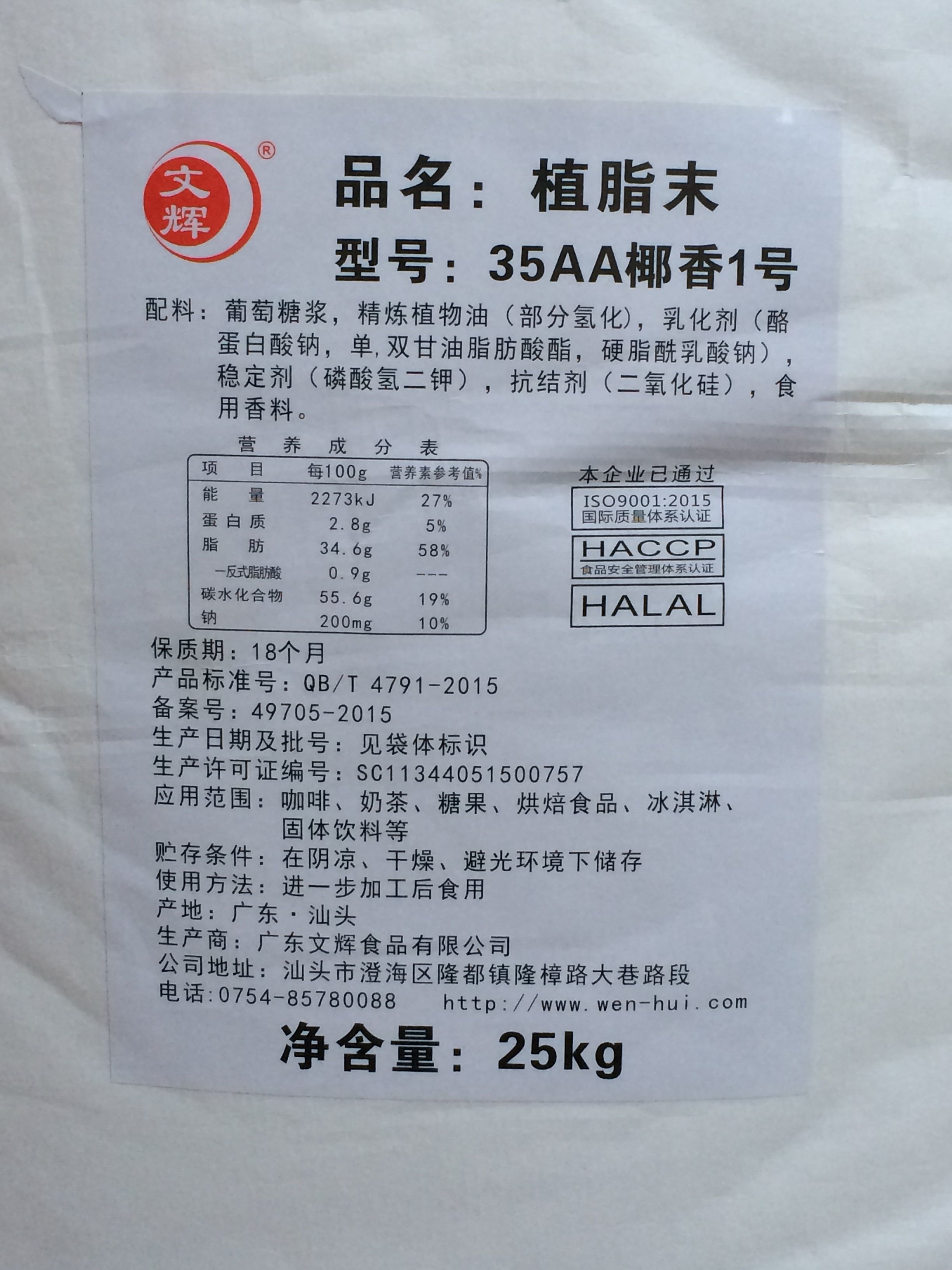 Shantou Wenhui Coconut Powder 35AA Cream Coconut Size 1 25kg Coconut Fat Vegetable Extract Milk Tea Ingredients