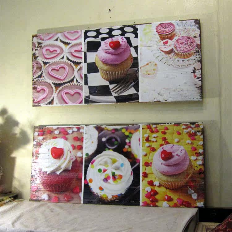 Solid wood doing old hanging plate Painted Wooden Board Decoration Painting Refreshments Pattern Cake Decoration Painting American Countryside Color Mood