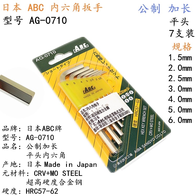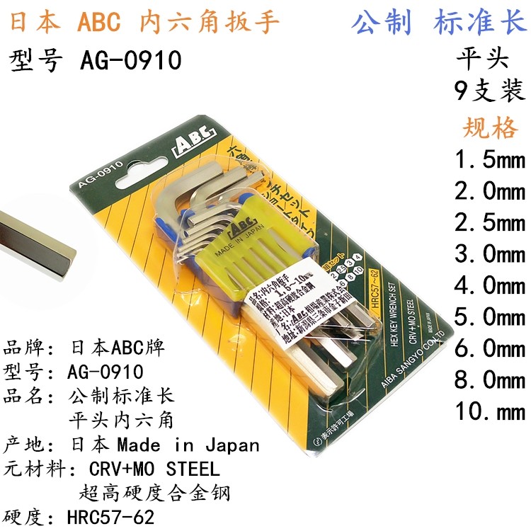Hexagon wrench Hex key AG-0710 AG-0910 Japan ABC metric standard 1 5-10mm