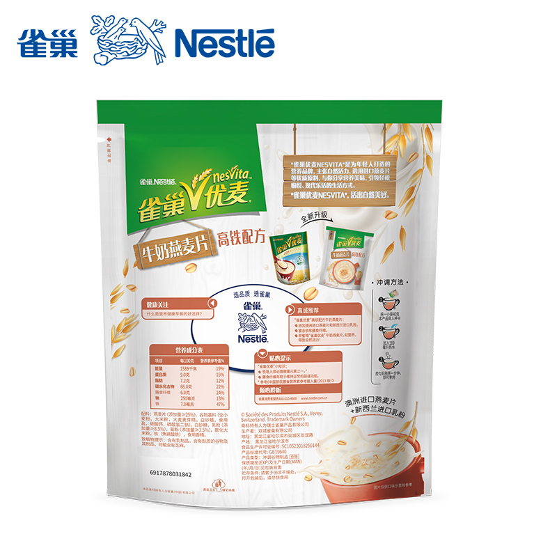 (Flagship Store) Nestle Youmai High-speed Iron Formula Instant Delicious Breakfast Milk Nutritious Oatmeal 400g Bag
