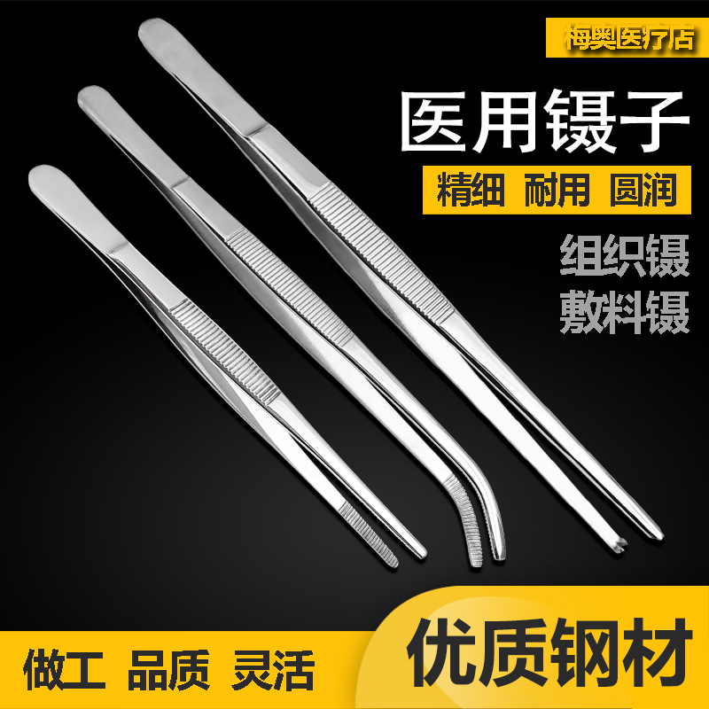 Good quality stainless steel medical tweezers with hook-free flat mouth surgical ophthalmology tweezers lengthened elbow water grass forceps 30cm