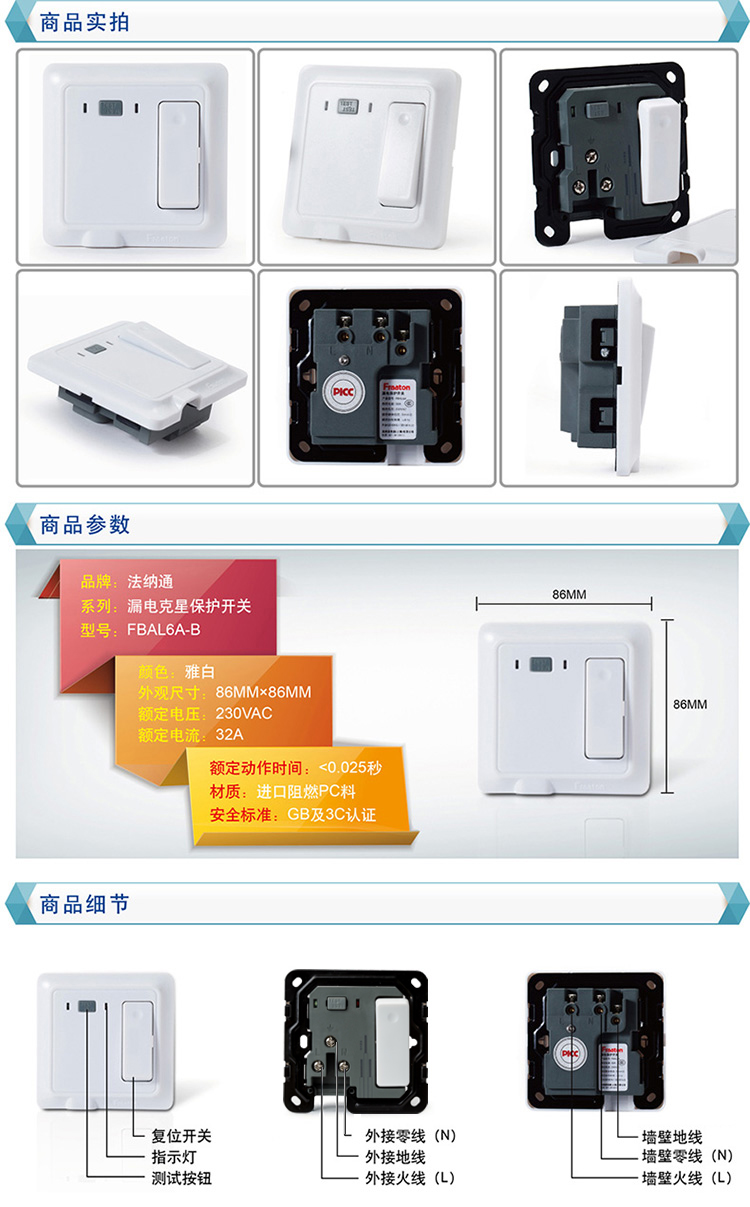 Fannaton with leakage protector 32A cabinet machine air conditioning socket water heater 3P40A air switch 86 type