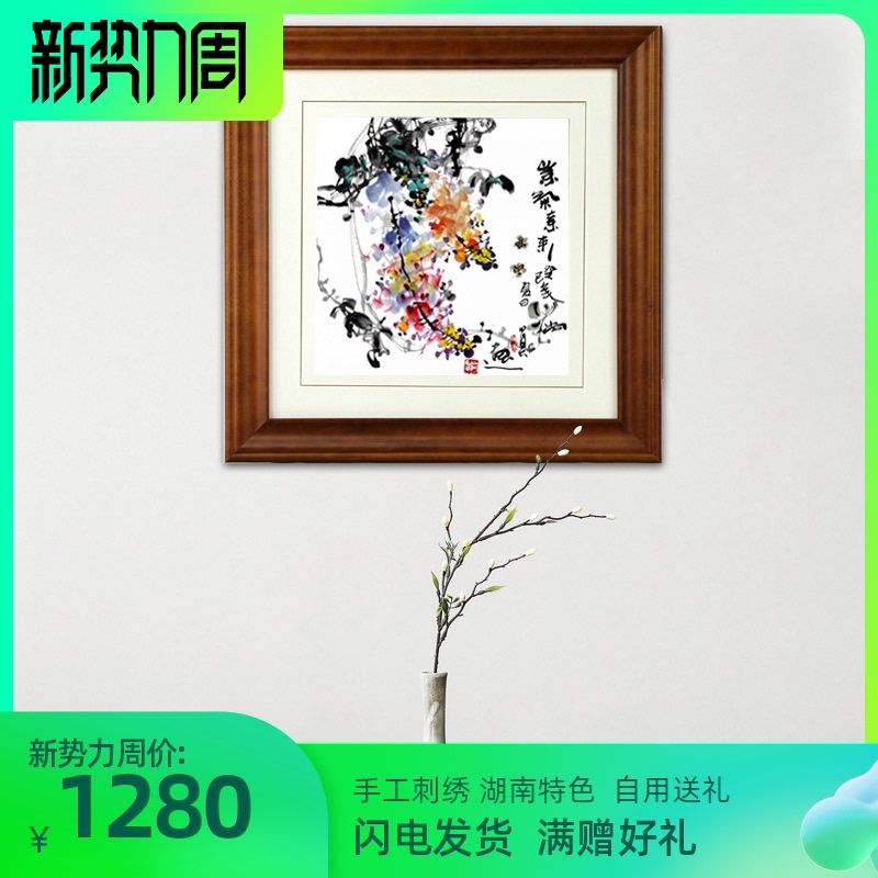 Ifei Xiang embroidered handmade embroidery finished product hanging painting Chinese style living room sofa Background wall dining room Bedroom decoration painted solid wood