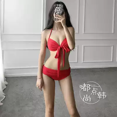 Red bikini variety~Thailand custom bikini small chest gathered steel tray red bikini hot spring bathing suit female