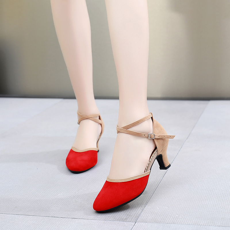 Female Latin Dance Shoes Female Dance Shoes Dance Shoes Blue Modern Dance Shoes Red Square Dance Shoes Middle Heel Soft Bottom Winter