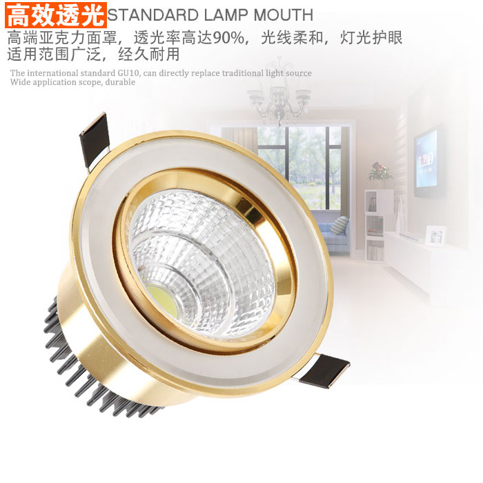 Gold downlight led light luxury downlight Living room background wall light Embedded European ceiling three-color spot light hole light 7 5