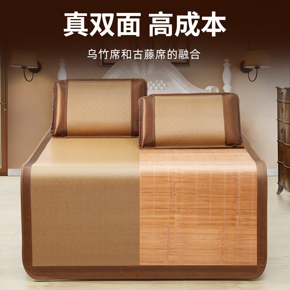 Yellow Gullin Bamboo Mat Mat mat 1 8 bed 1 5 m XI Fold Double home Naked Sleep Flip-side Double Use Summer