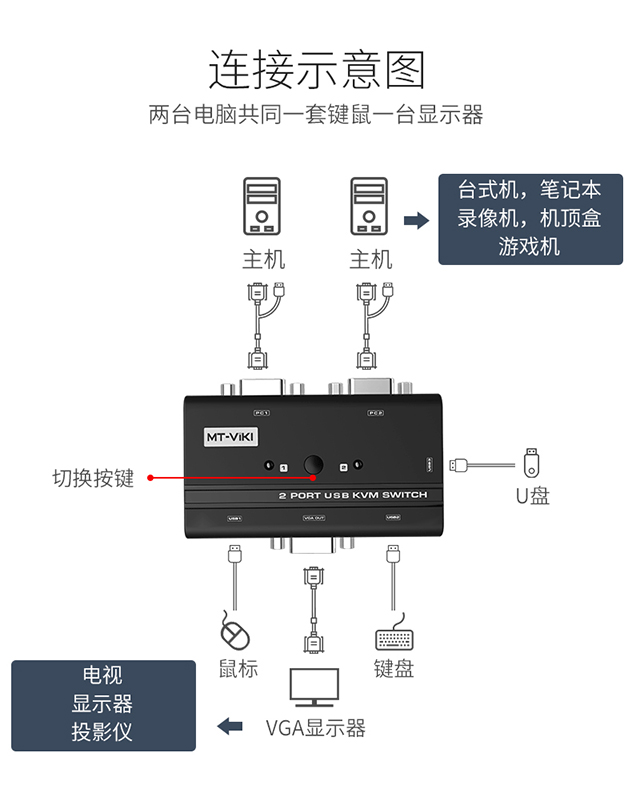 Maituovimoment MT-260KL KVM 2-mouth switcher manual USB KVM switcher fine assembly line
