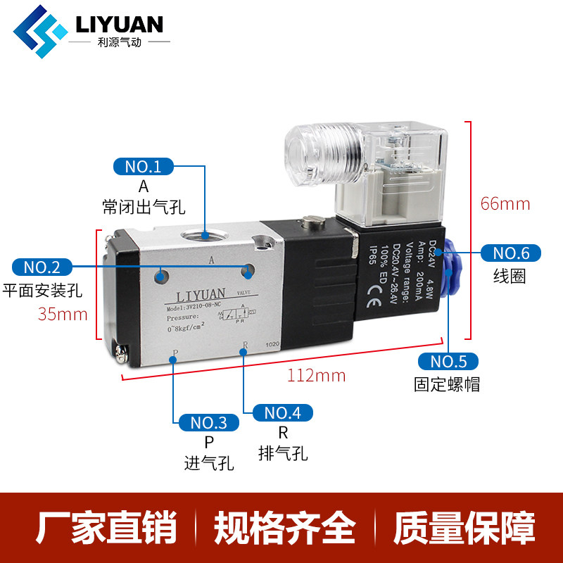 Liyuan pneumatic Yadke type two-position three-way solenoid valve 3V210-08-NC 110-06 3V310-10-NO