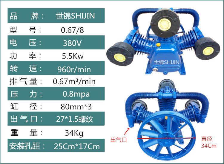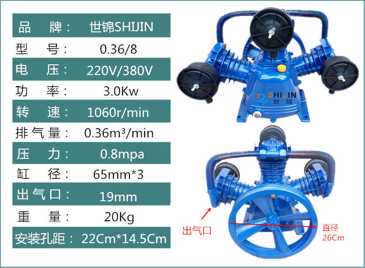 Shijin air compressor head belt type new single and double cylinder three cylinder woodworking painting auto repair electric pump host