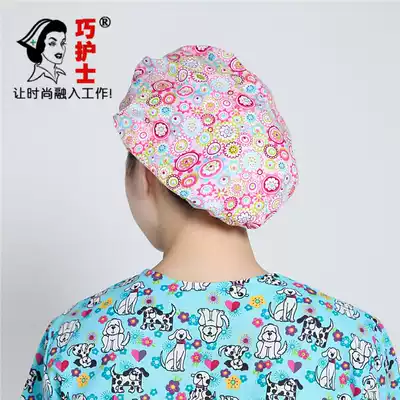Qiao nurse pink flower sea printed puffy cap Cotton operating room nurse doctor long hair work cap Anesthesiologist cap