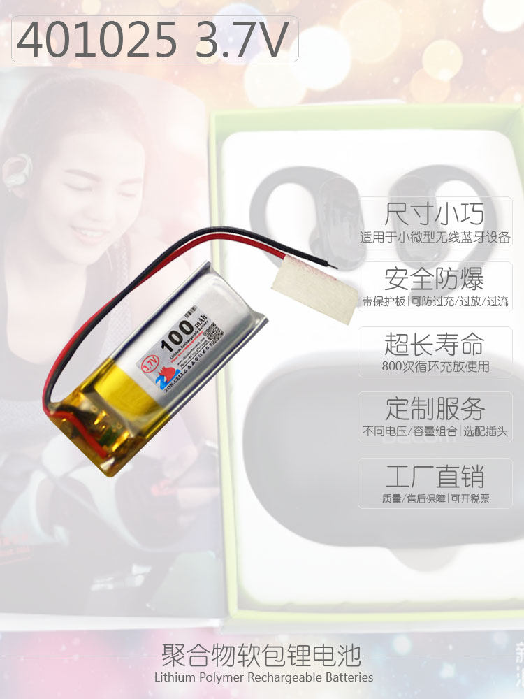 Zhongshunxin 401025 Bluetooth TWS wireless headphones micro portable mobile device polymer lithium battery 3 7V