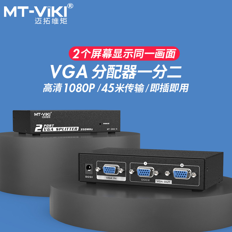 VGA splitter 1 in 2 out split screen device 1 in 2 1 in 2 out HD video screen sharing same screen 350hz