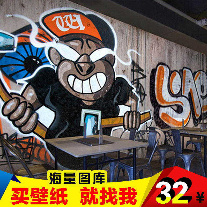 3D three-dimensional street personality art graffiti wallpaper custom KTV bar Internet Cafe creative background wall wallpaper mural